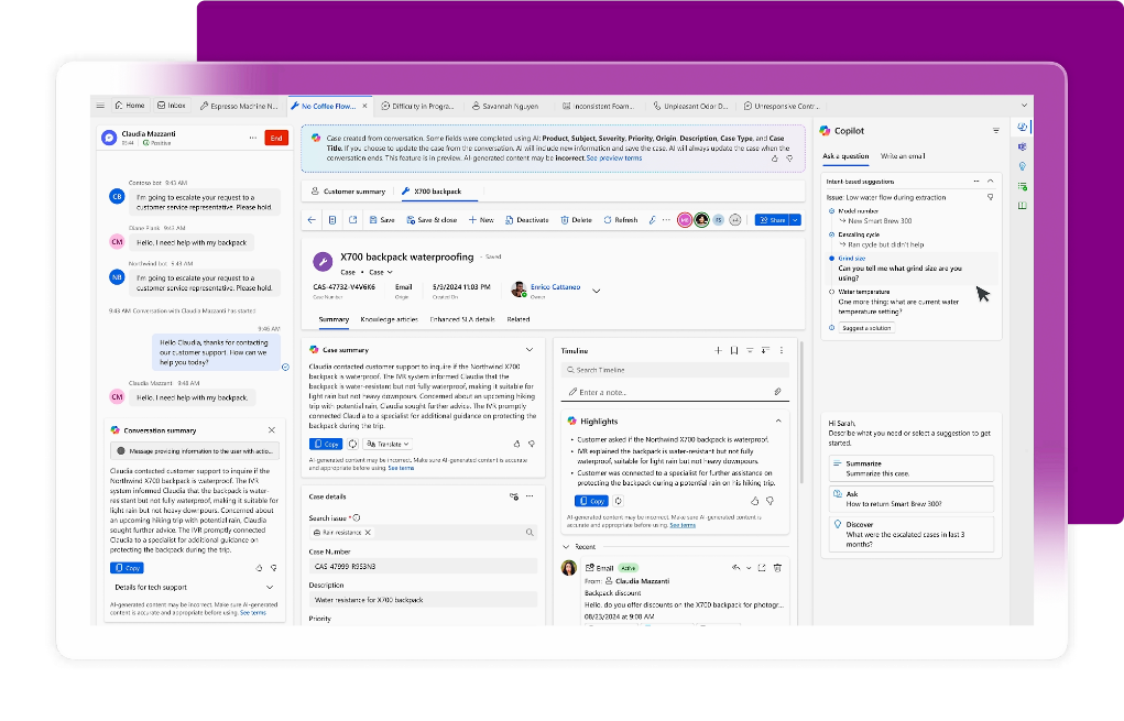Create, update, follow up with customers, and close cases automatically with the Case Management Agent for Dynamics 365 Customer Service. Reps spend less time on manual work and more time solving problems.